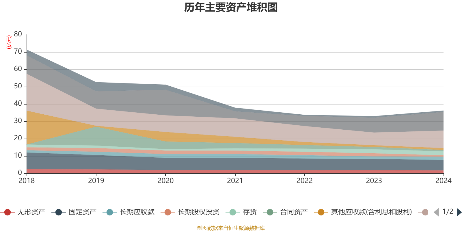 资产重大变化方面,截至2024年末,公司应收票据及应收账款较上年末增加37.31%,占公司总资产比重上升5.62个百分点;货币资金较上年末增加25.51%,占公司总资产比重上升3.74个百分点;长期股权投资较上年末减少56.5%,占公司总资产比重下降3.26个百分点;固定资产较上年末减少6.36%,占公司总资产比重下降2.88个百分点。