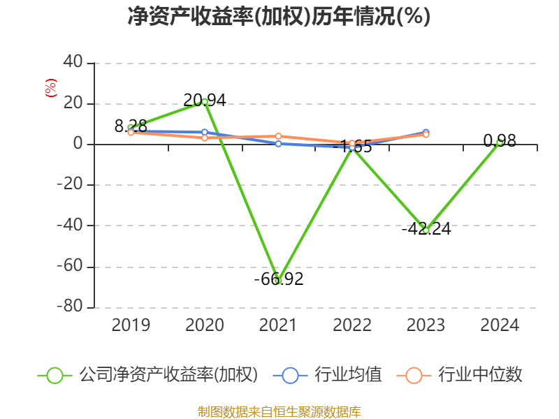 数据显示,2024年公司加权平均净资产收益率为0.98%,较上年同期上升43.22个百分点。公司2024年投入资本回报率为-0.14%,较上年同期上升14.03个百分点。