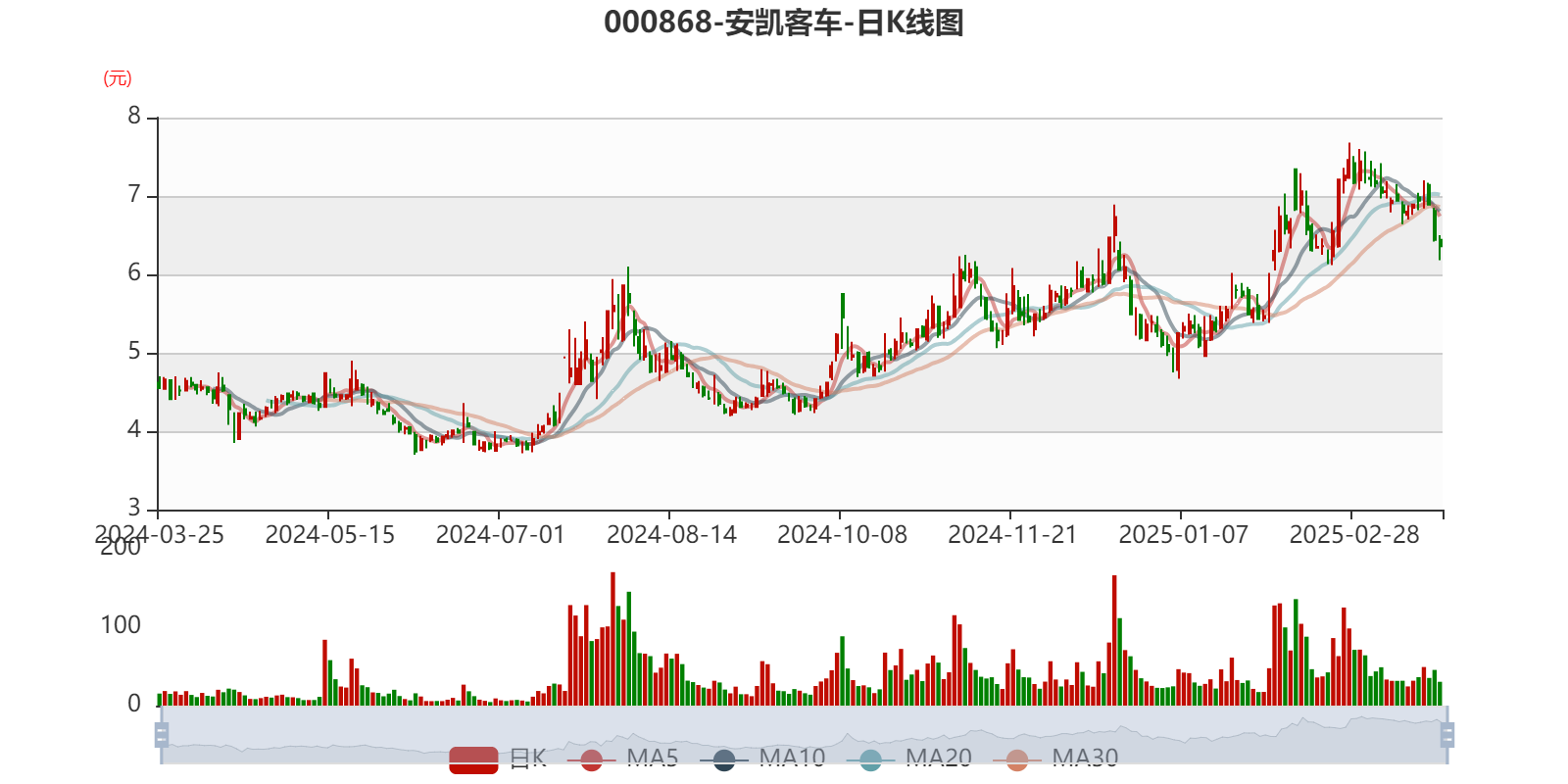 以3月24日收盘价计算,安凯客车目前市盈率(TTM)约为712.02倍,市净率(LF)约6.96倍,市销率(TTM)约2.18倍。