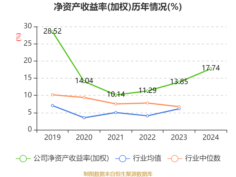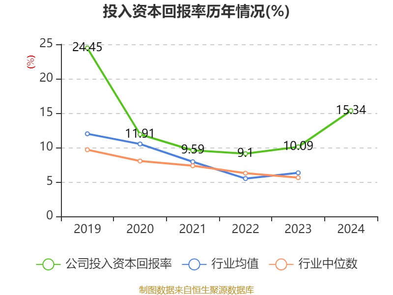 数据显示,2024年公司加权平均净资产收益率为17.74%,较上年同期上升3.89个百分点。公司2024年投入资本回报率为15.34%,较上年同期上升5.25个百分点。