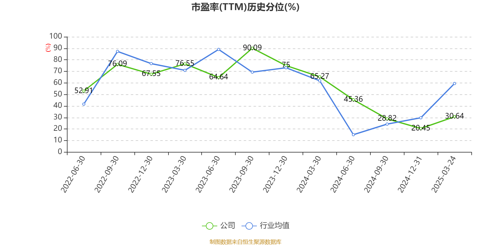 市盈率、市净率为负时,不显示当期分位数,会导致折线图中断。
