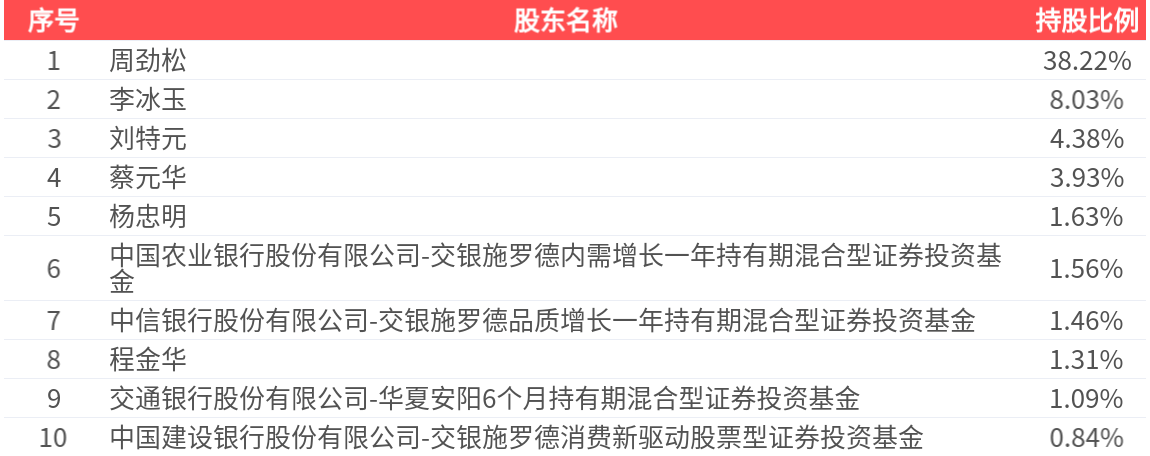 公司股东户数为2.25万户,前十大股东持股数量为2.82亿股,占总股本比例为62.44%,前十大股东持股情况如下: