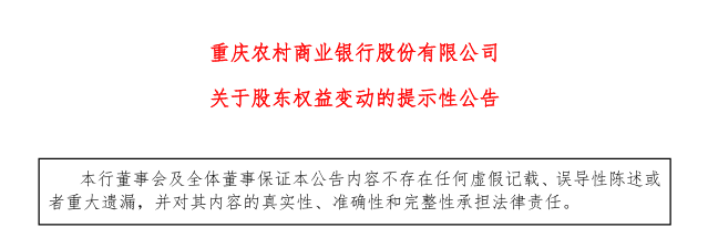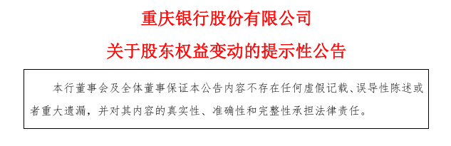 3月24日,重庆银行(601963)和渝农商行(601077)同时收到其第一大股东重庆渝富资本运营集团有限公司(下称“渝富资本”)关于权益变动的告知函。