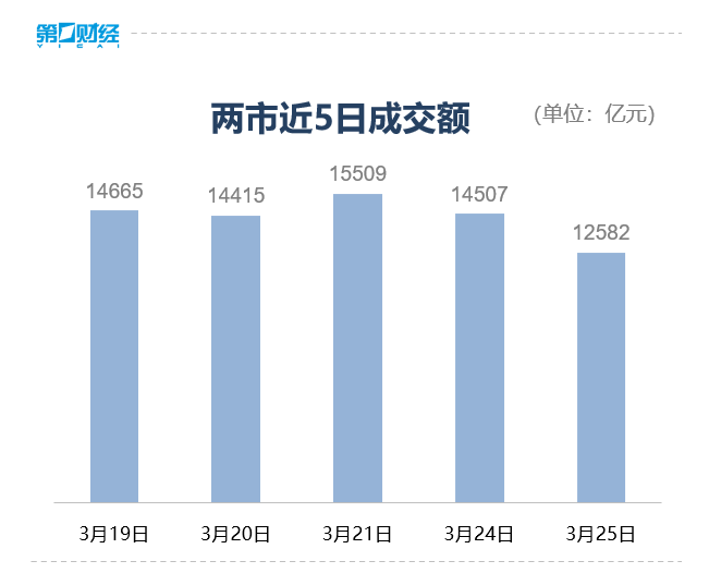 3月25日,A股三大指数窄幅震荡。沪指收平,深成指跌0.43%,创业板指跌0.33%。沪深两市全天成交额1.26万亿,较上个交易日缩量1925亿。