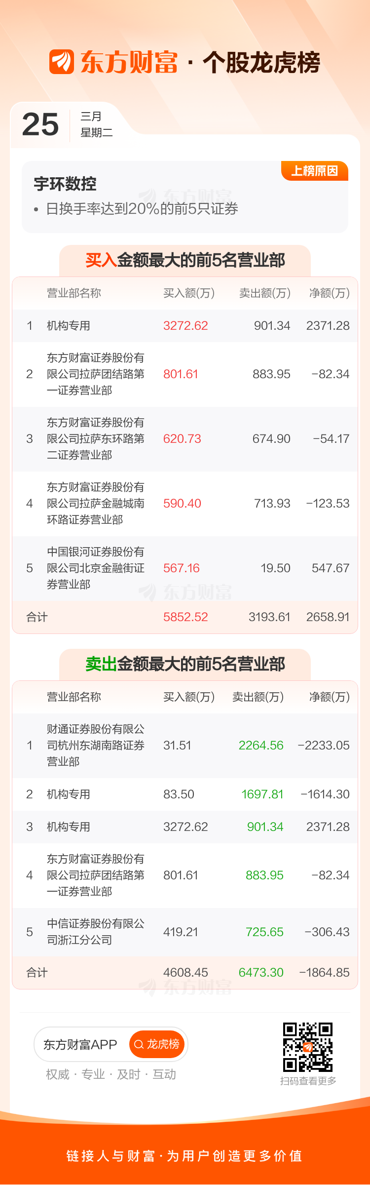 交易所2025年3月25日公布的交易公开信息显示,宇环数控因成为日换手率达到20%的前5只证券上榜。宇环数控当日收报19.92元,涨跌幅-9.99%,偏离值37.10%,换手率37.36%,成交额7.83亿。