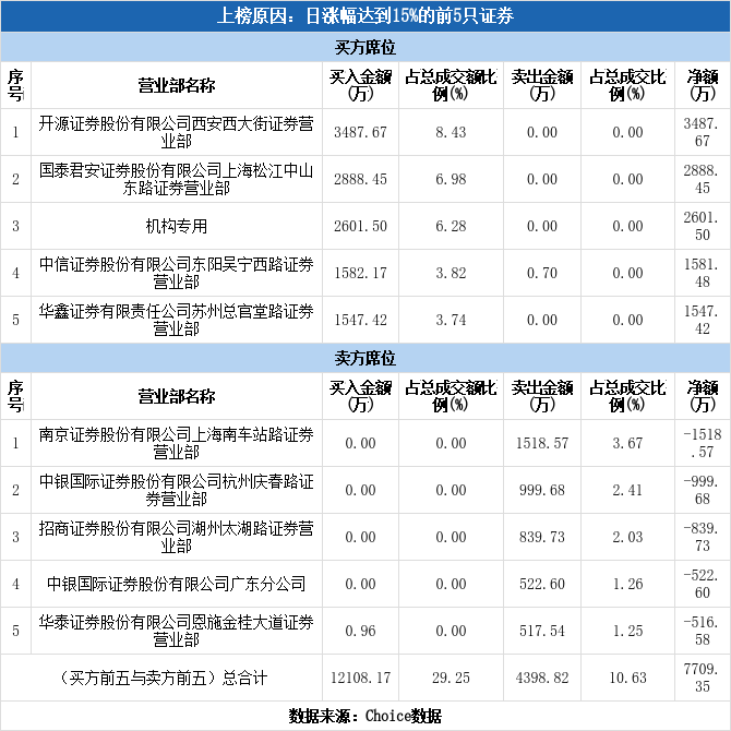 龙虎榜数据显示,今日买三为机构席位,该席位净买入2601.50万元,占龙虎榜净买额的33.74%。
