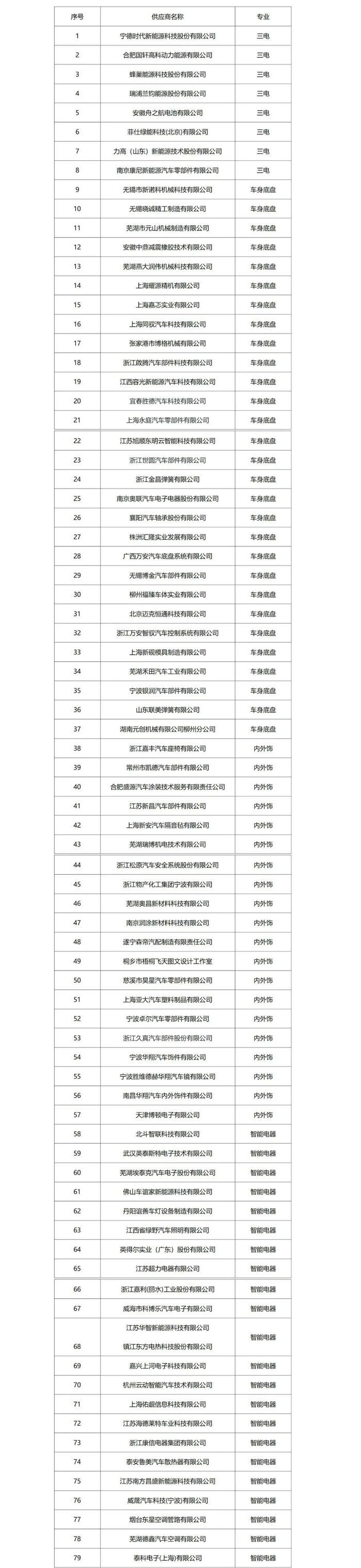 以下是哪吒汽车部分供应商名单: