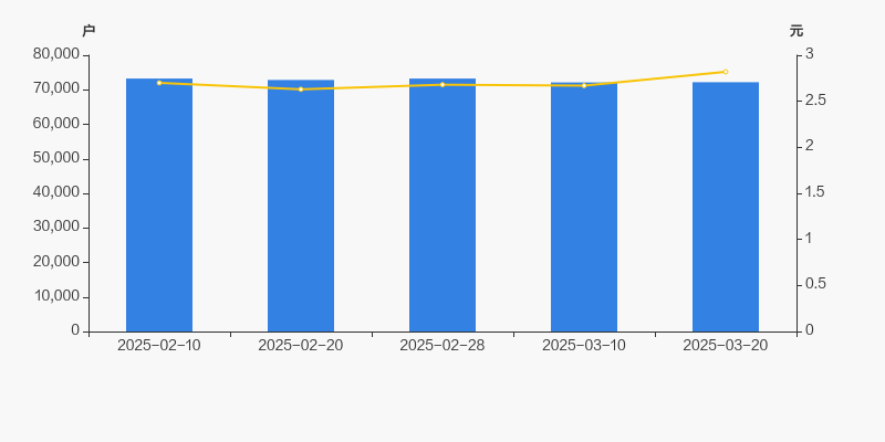 2025年2月10日至今,公司股东户数有所下降,区间跌幅为1.45%。2025年2月10日至2025年3月20日区间股价上涨4.44%。