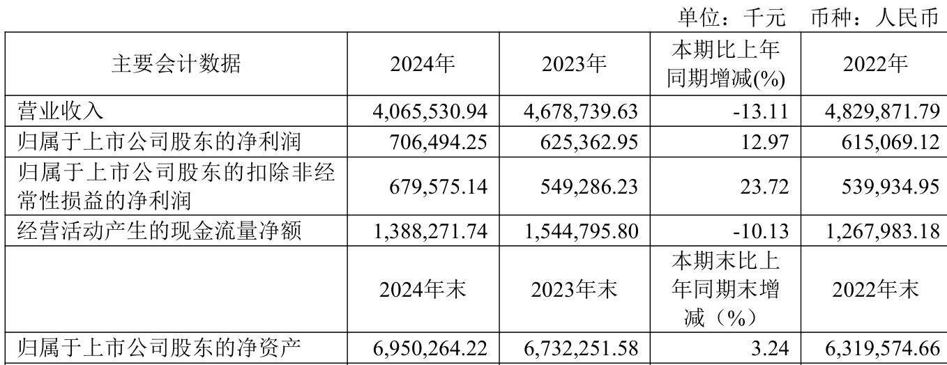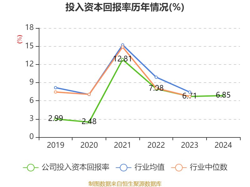 数据显示,2024年公司加权平均净资产收益率为10.44%,较上年同期上升0.84个百分点。公司2024年投入资本回报率为6.85%,较上年同期上升0.14个百分点。