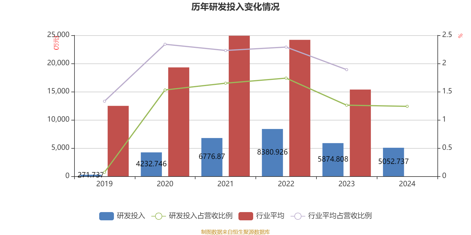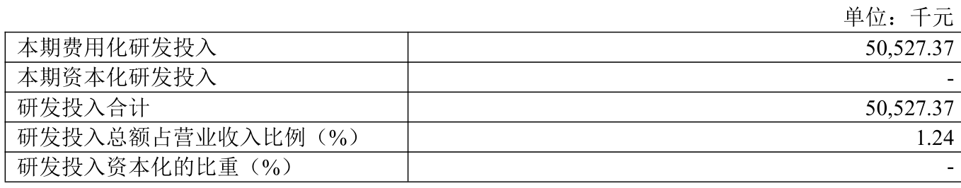 2024年全年,公司研发投入金额为5052.74万元,同比下降13.99%;研发投入占营业收入比例为1.24%,相比上年同期下降0.02个百分点。此外,公司全年研发投入资本化率为0%。