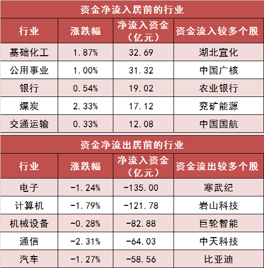【25日资金路线图】两市主力资金净流出近330亿元 化工等行业实现净流入