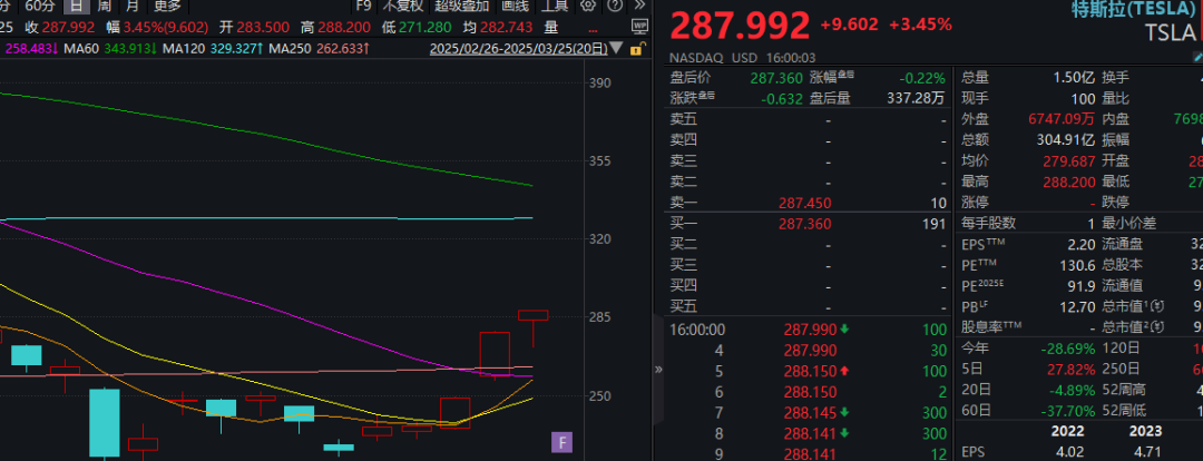 特斯拉涨超3%。最近5个交易日,特斯拉股价持续反弹,区间累计涨幅已超过20%。此前,在短短三个月的时间里,特斯拉股价自高位一度腰斩。
