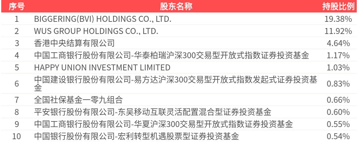 公司股东户数为12.52万户,前十大股东持股数量为7.93亿股,占总股本比例为41.32%,前十大股东持股情况如下: