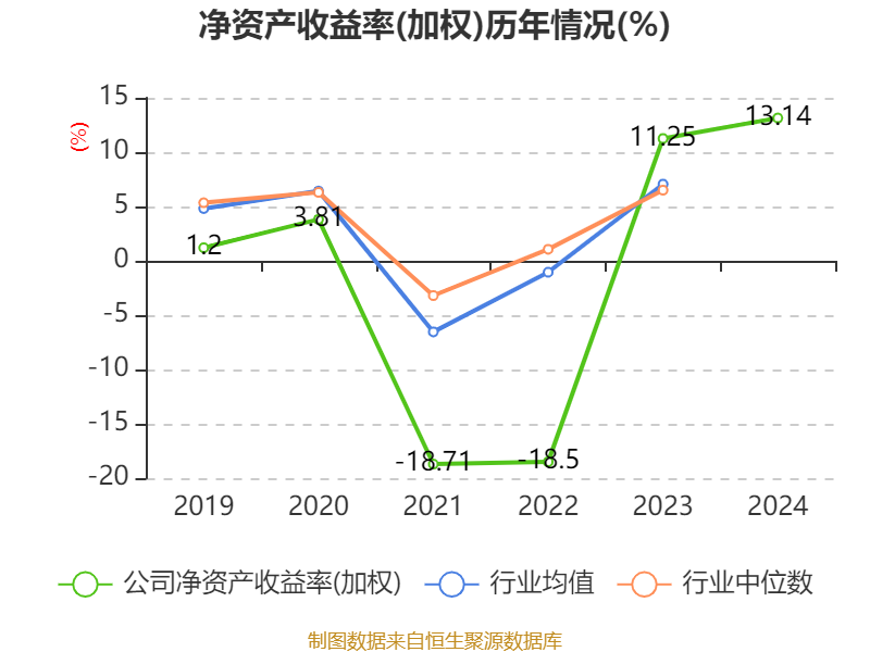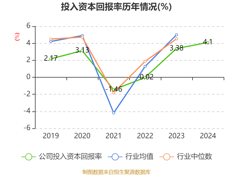 数据显示,2024年公司加权平均净资产收益率为13.14%,较上年同期上升1.89个百分点。公司2024年投入资本回报率为4.1%,较上年同期上升0.72个百分点。