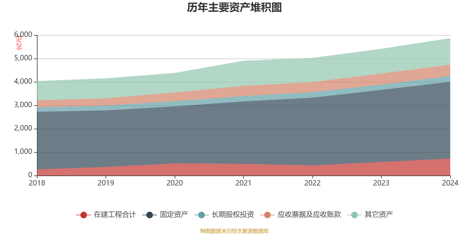 资产重大变化方面,截至2024年末,公司在建工程合计较上年末增加24.32%,占公司总资产比重上升1.56个百分点;固定资产较上年末增加6.71%,占公司总资产比重下降0.91个百分点;应收票据及应收账款较上年末增加1.98%,占公司总资产比重下降0.52个百分点;货币资金较上年末增加18.29%,占公司总资产比重上升0.28个百分点。