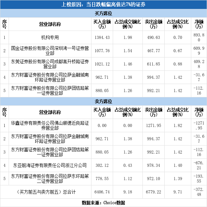 龙虎榜数据显示,今日买一为机构席位,该席位净买入893.80万元,占该股今日总成交额的1.28%。