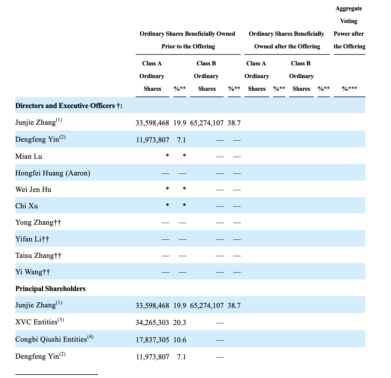 据最新招股书披露,张俊杰为既是霸王茶姬创始人也是大股东,持有A类普通股19.9%,B类普通股38.7%;尹登峰担任董事、首席运营官,持股7.1%。此外,上述风投机构XVC最新持股比例为20.29%;琮碧秋实持股10.56%。