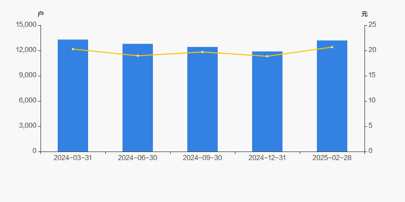 截至2025年2月28日,公司最新总股本为1.14亿股,其中流通股本为2800万股。户均持有流通股数量由上期的2355股下降至2123股,户均流通市值4.39万元。