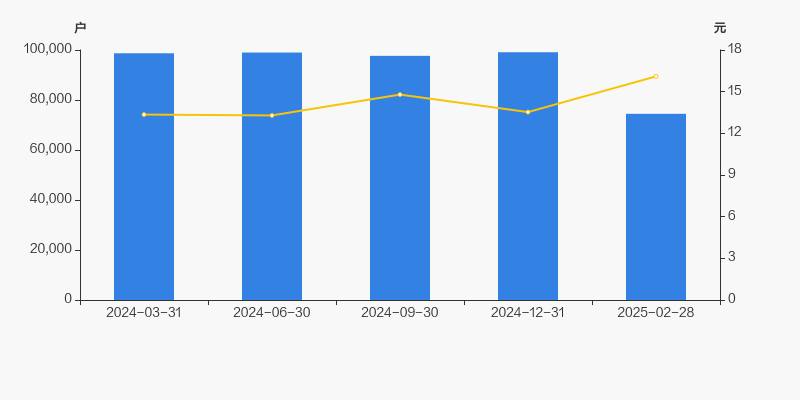 截至2025年2月28日,公司最新流通股本为34.68亿股。户均持有流通股数量由上期的3.5万股上升至4.66万股,户均流通市值74.97万元。