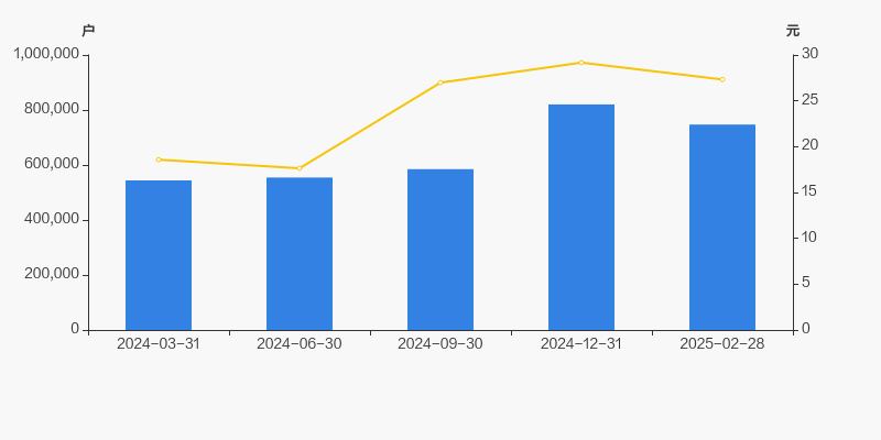 截至2025年2月28日,公司最新A股总股本为148.21亿股,其中流通股本为121.77亿股。户均持有流通股数量由上期的1.48万股上升至1.63万股,户均流通市值44.54万元。
