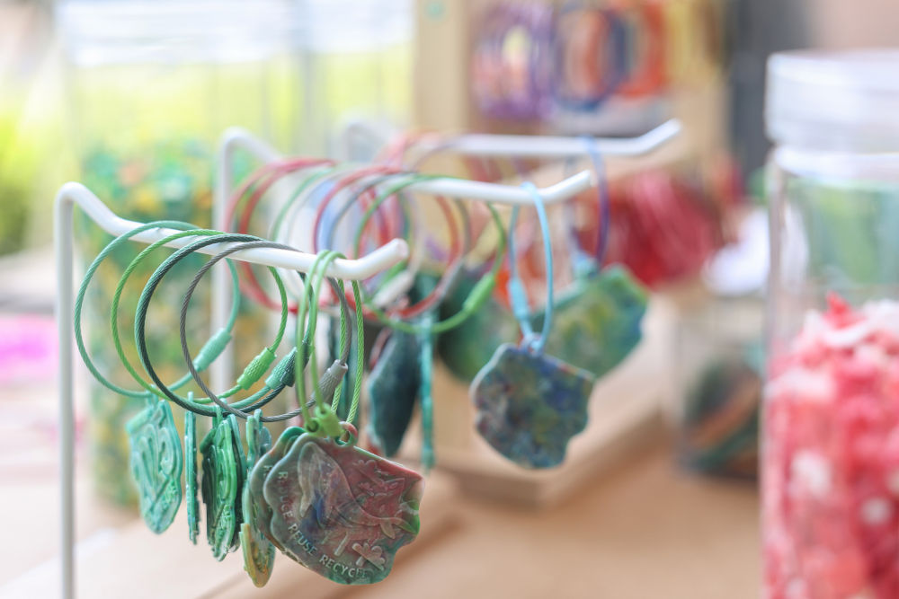 一个废弃塑料瓶,在博鳌走上了多元“重生之路”。如果你还有“碳币”余额,不妨再去兑换些小礼品。塑料瓶瓶盖经粉碎、加热后,能够塑造成钥匙扣、行李牌、海洋生物、绿色植物等多种造型,无不传递着环保理念。