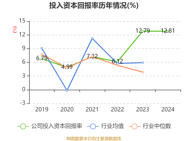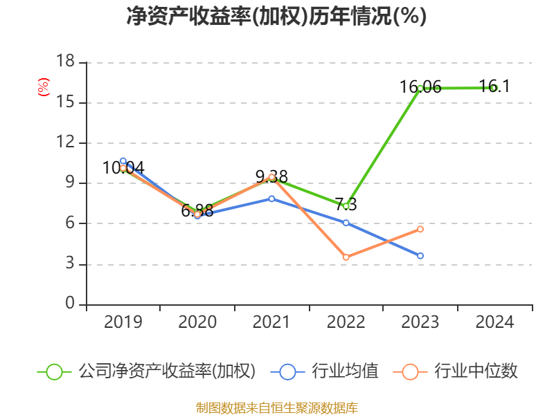 数据显示,2024年公司加权平均净资产收益率为16.1%,较上年同期上升0.04个百分点。公司2024年投入资本回报率为12.81%,较上年同期上升0.02个百分点。