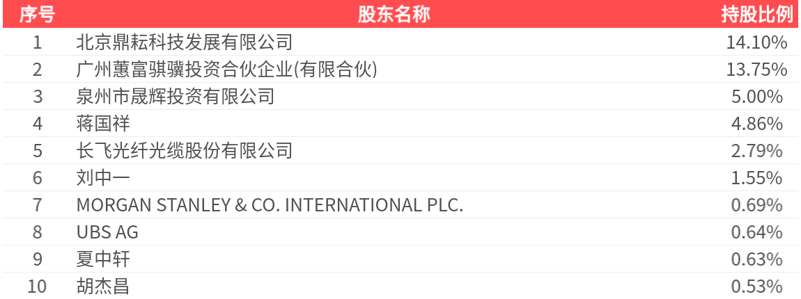 公司股东户数为2.07万户,前十大股东持股数量为8619.10万股,占总股本比例为44.56%,前十大股东持股情况如下: