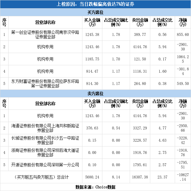 多主力现身龙虎榜,皇庭国际跌停(03-27)