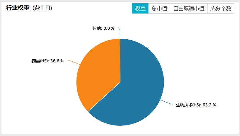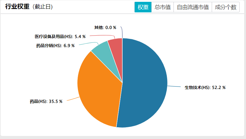 恒生生物科技指数:反映香港上市生物科技公司的整体表现,成分股有50只,涵盖药品、生物技术、医疗设备及用品、药品分销等行业。个股平均市值约381亿元。