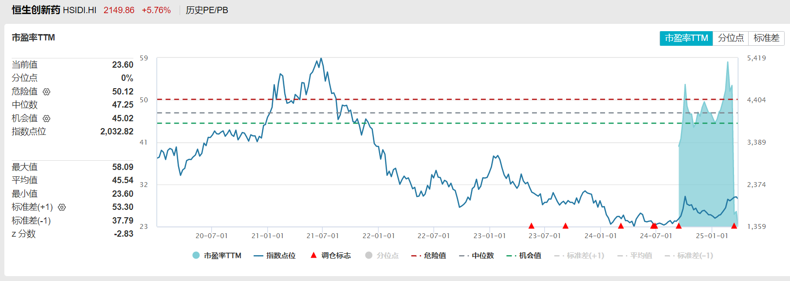 恒生创新药指数目前的市盈率水平仍处在历史0%分位以下,属于历史极低的位置。