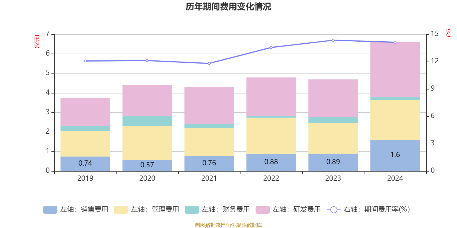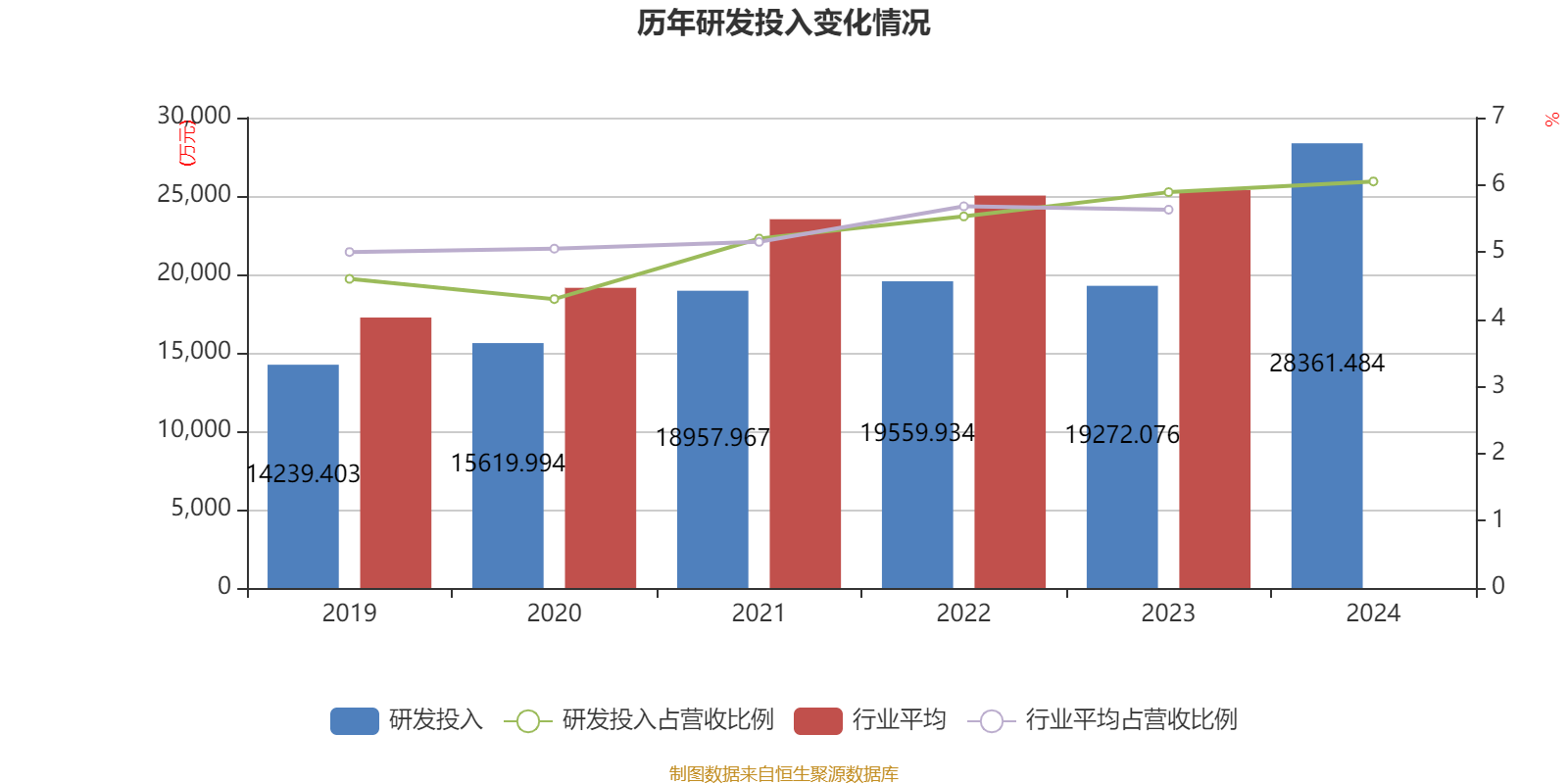 2024年全年,公司研发投入金额为2.84亿元,同比增长47.16%;研发投入占营业收入比例为6.05%,相比上年同期上升0.16个百分点。