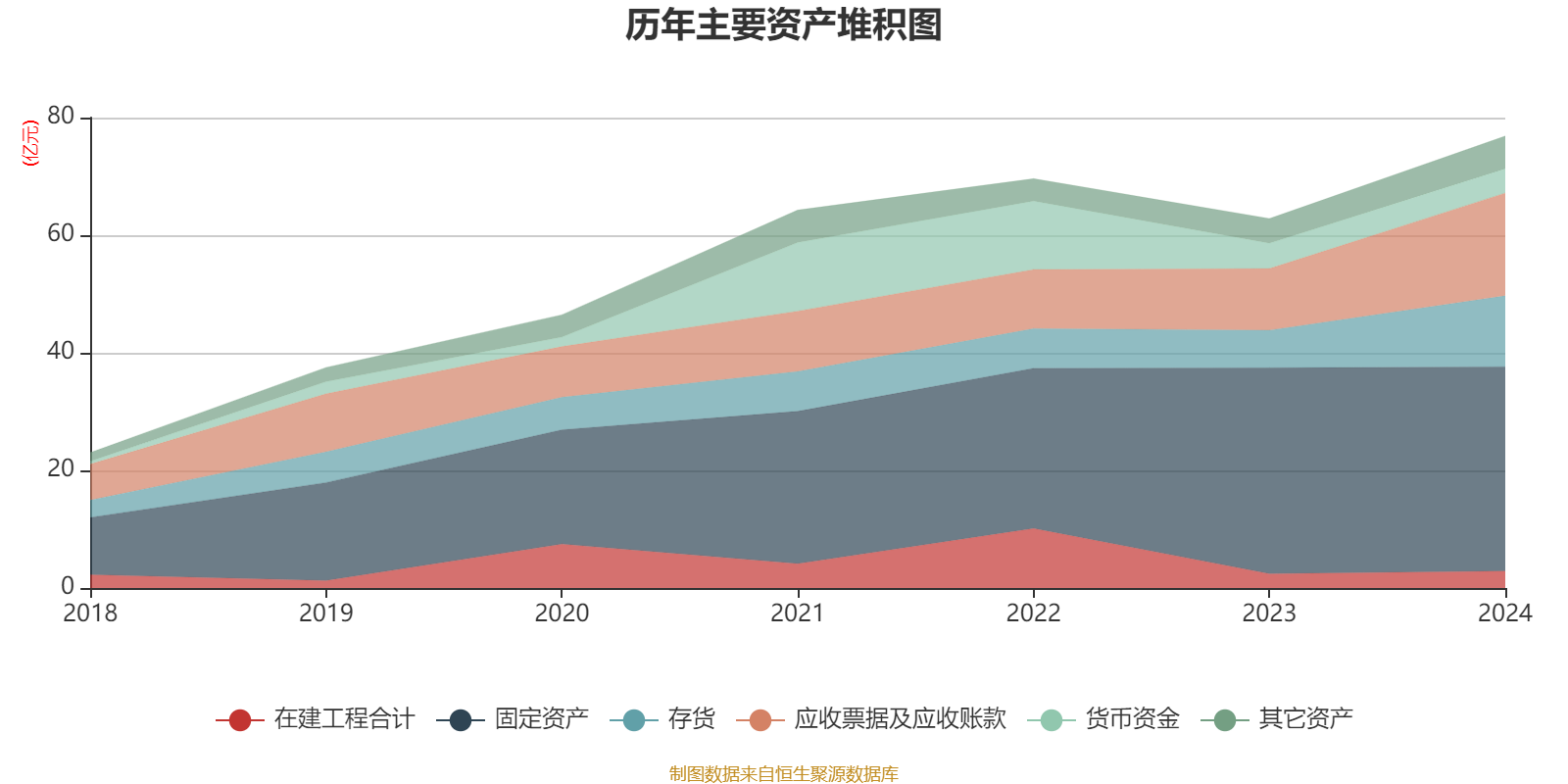资产重大变化方面,截至2024年末,公司固定资产较上年末减少0.78%,占公司总资产比重下降10.52个百分点;应收票据及应收账款较上年末增加66.9%,占公司总资产比重上升6.08个百分点;存货较上年末增加88.75%,占公司总资产比重上升5.53个百分点;货币资金较上年末减少4.5%,占公司总资产比重下降1.5个百分点。