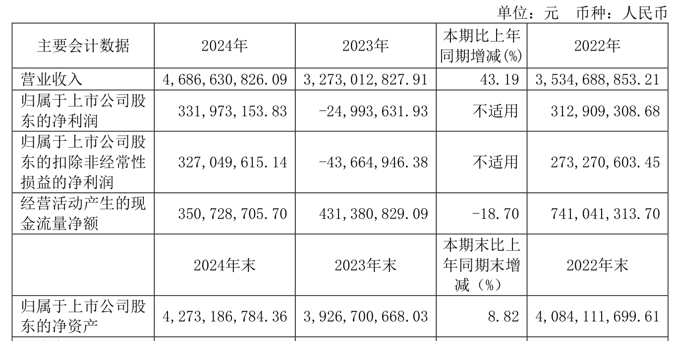 中证智能财讯生益电子(688183)3月28日披露2024年年度报告。2024年,公司实现营业总收入46.87亿元,同比增长43.19%;归母净利润3.32亿元,同比扭亏;扣非净利润3.27亿元,同比扭亏;经营活动产生的现金流量净额为3.51亿元,同比下降18.70%;报告期内,生益电子基本每股收益为0.4元,加权平均净资产收益率为8.24%。公司2024年度分配预案为:拟向全体股东每10股派现2.5元(含税)。
