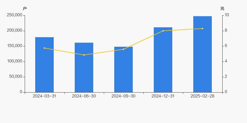 截至2025年2月28日,公司最新总股本为17.43亿股,其中流通股本为17.26亿股。户均持有流通股数量由上期的8171股下降至6977股,户均流通市值5.78万元。