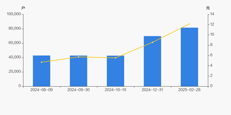 2024年8月9日至今,公司股东户数显著大幅增长,区间涨幅达90.55%。2024年8月9日至2025年2月28日区间股价上涨159.89%。