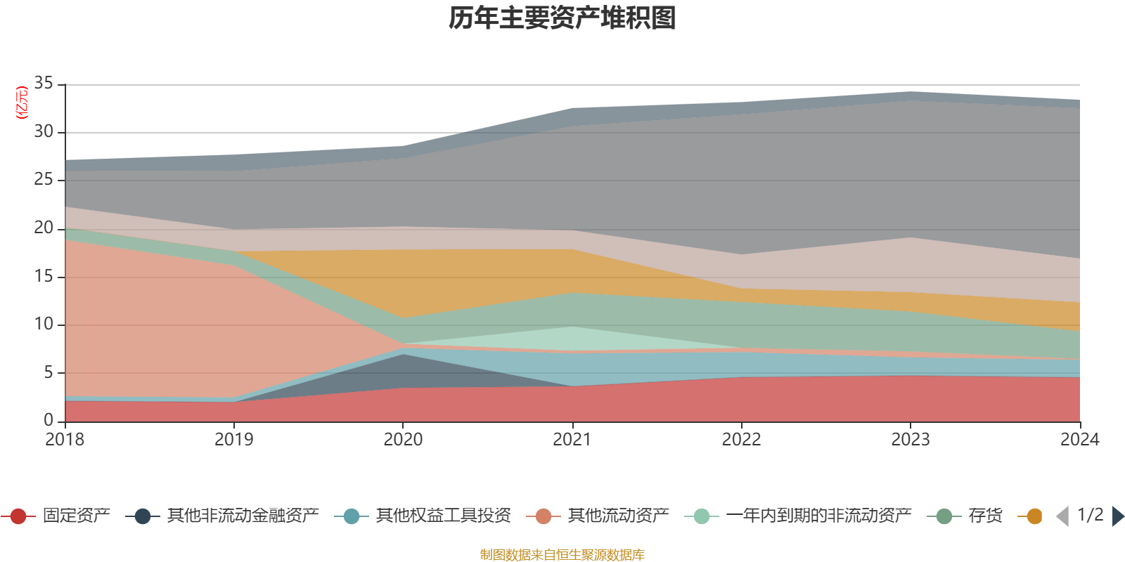 负债重大变化方面,截至2024年末,公司应付票据及应付账款较上年末减少20.2%,占公司总资产比重下降1.92个百分点;其他应付款(含利息和股利)较上年末减少45.16%,占公司总资产比重下降0.57个百分点;递延所得税负债较上年末减少69.24%,占公司总资产比重下降0.43个百分点;应交税费较上年末减少24.9%,占公司总资产比重下降0.36个百分点。