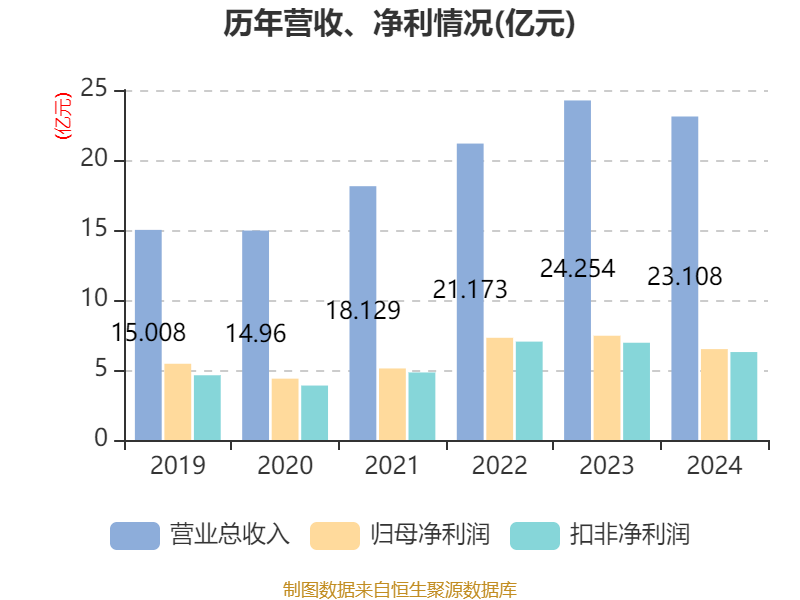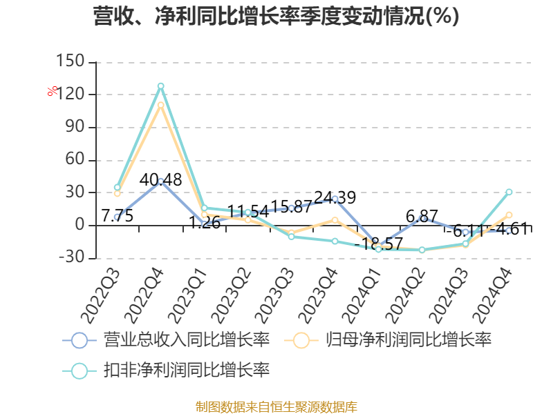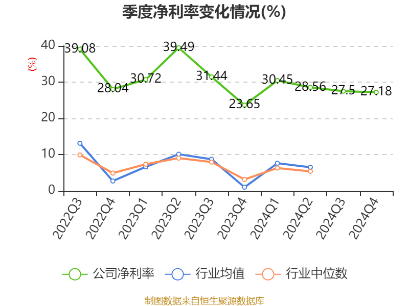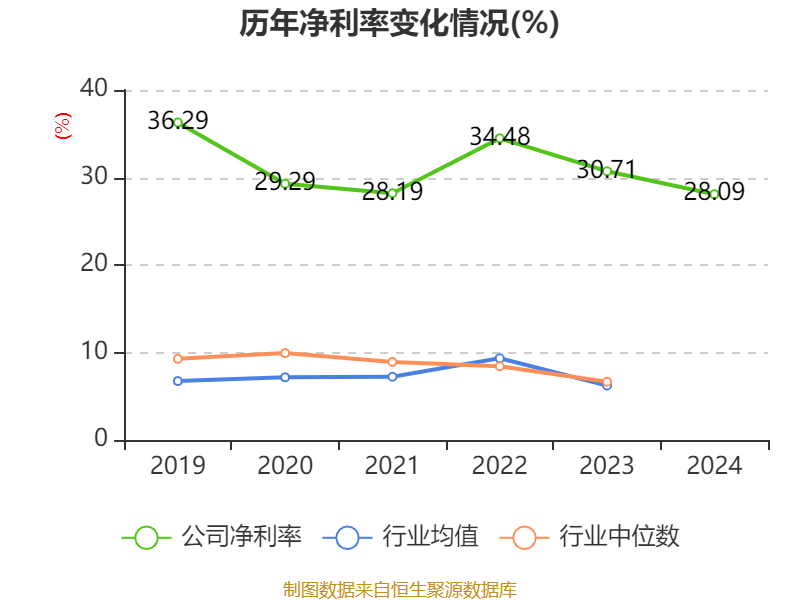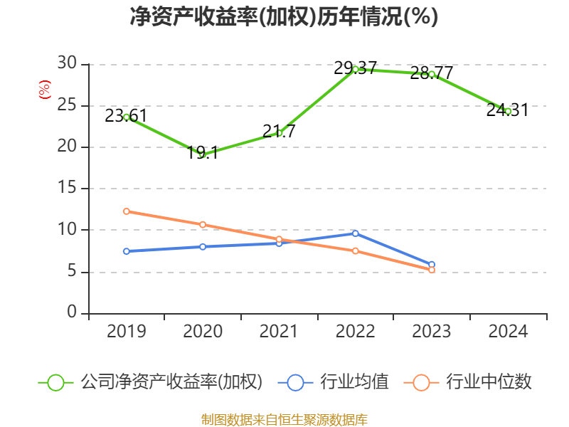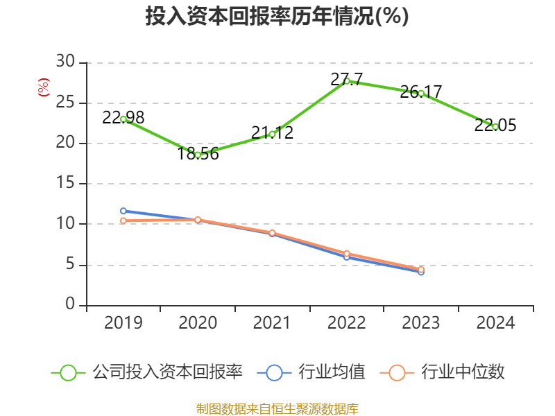 数据显示,2024年公司加权平均净资产收益率为24.31%,较上年同期下降4.46个百分点。公司2024年投入资本回报率为22.05%,较上年同期下降4.12个百分点。