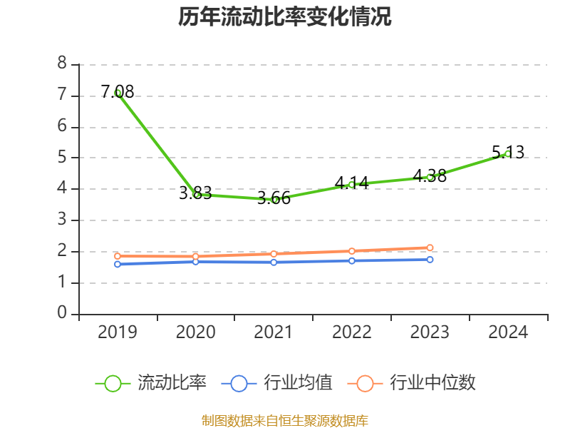 2024年,公司流动比率为5.13,速动比率为4.57。