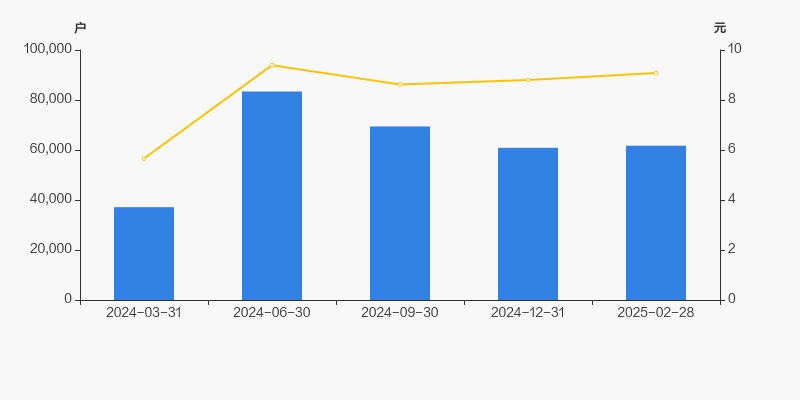 截至2025年2月28日,公司最新总股本为5.48亿股,且均为流通股。户均持有流通股数量由上期的9001股下降至8877股,户均流通市值8.06万元。