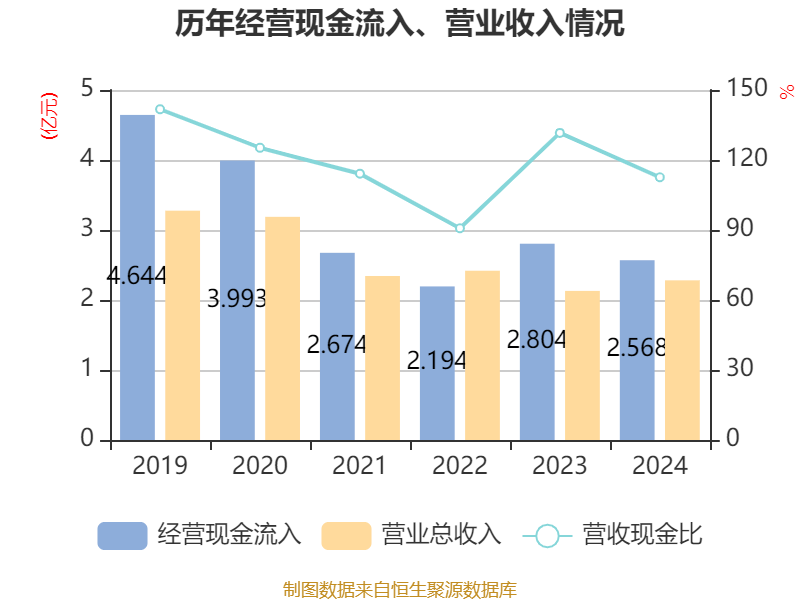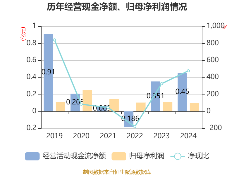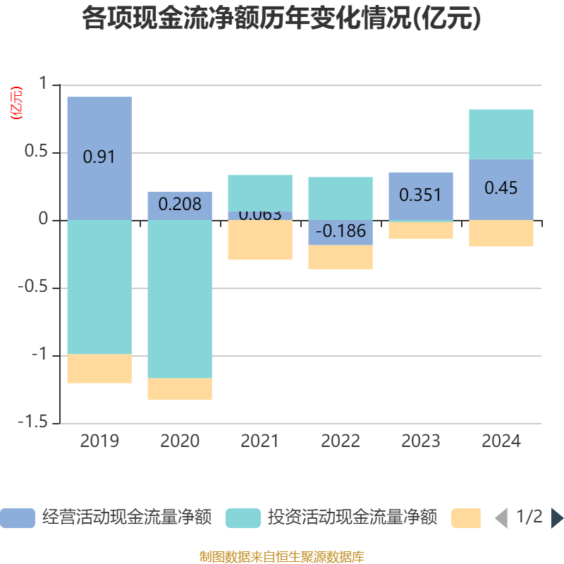 截至2024年,公司经营活动现金流净额为4504.56万元,同比增长28.22%;筹资活动现金流净额-1947.57万元,同比减少710.01万元;投资活动现金流净额3656.35万元,上年同期为-151.97万元。