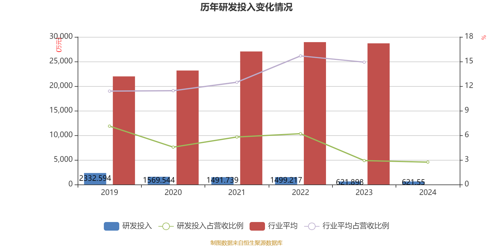 2024年全年,公司研发投入金额为621.55万元,同比下降0.06%;研发投入占营业收入比例为2.73%,相比上年同期下降0.19个百分点。此外,公司全年研发投入资本化率为0%。