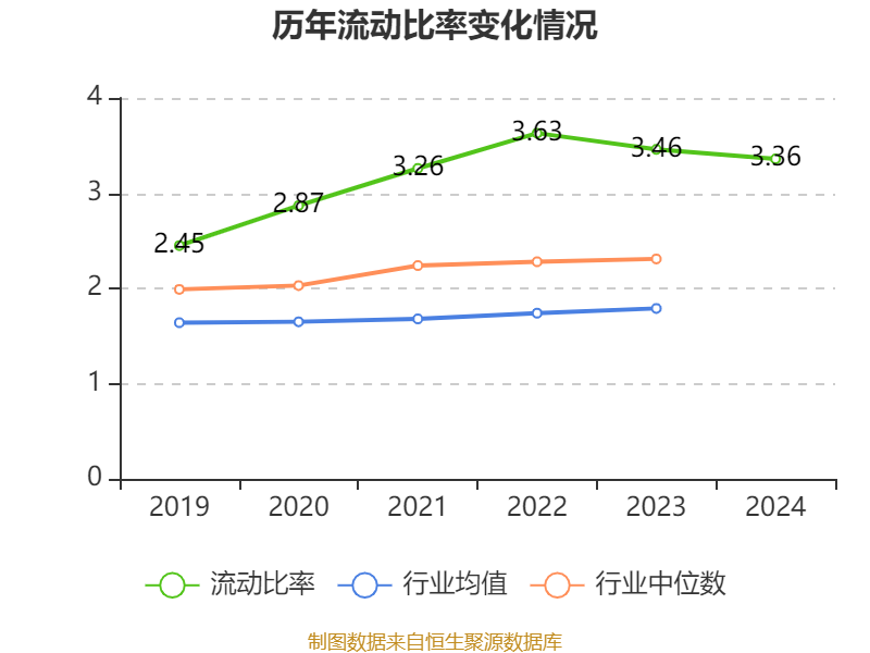2024年,公司流动比率为3.36,速动比率为2.77。