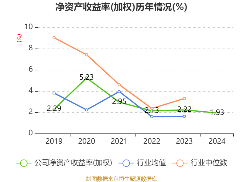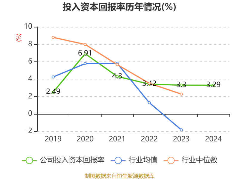 数据显示,2024年公司加权平均净资产收益率为1.93%,较上年同期下降0.29个百分点。公司2024年投入资本回报率为3.29%,较上年同期下降0.01个百分点。