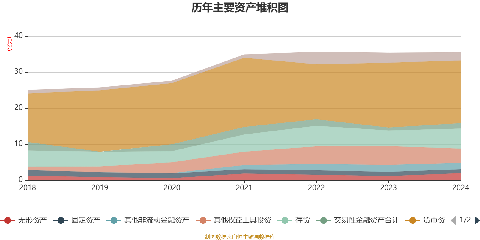 资产重大变化方面,截至2024年末,公司其他权益工具投资较上年末减少24.4%,占公司总资产比重下降3.65个百分点;存货较上年末增加28.02%,占公司总资产比重上升3.4个百分点;无形资产较上年末增加73.06%,占公司总资产比重上升2.28个百分点;交易性金融资产合计较上年末增加83.4%,占公司总资产比重上升1.92个百分点。