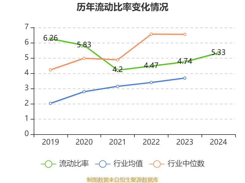 2024年,公司流动比率为5.33,速动比率为4.16。