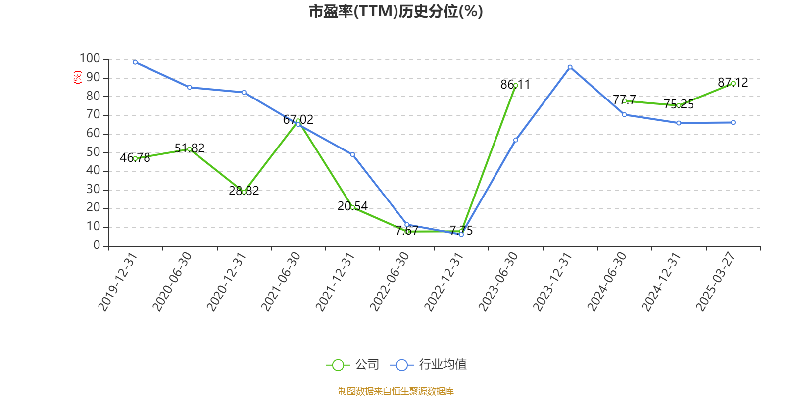 市盈率、市净率为负时,不显示当期分位数,会导致折线图中断。