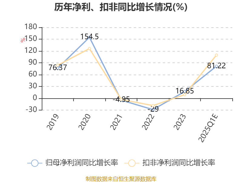 据公告, 2025年第一季度归属于上市公司股东的净利润大幅增长,主要原因如下:风电行业向好发展,行业景气度提升,风电零部件整体需求旺盛。公司紧抓风电行业发展机遇,加大风电市场开发力度、加快铸造产能释放节奏,锻造风电主轴、铸造风电产品出货量均大幅提升。铸造产能快速释放,生产流程不断优化,生产效率稳步提升,同时受益于风电行业需求增加和招标价格的止跌企稳,铸造产品售价有所提升,两者叠加助推铸造产品盈利能力逐渐改善。报告期内非经常性损益预计对净利润的影响额约为400万元。