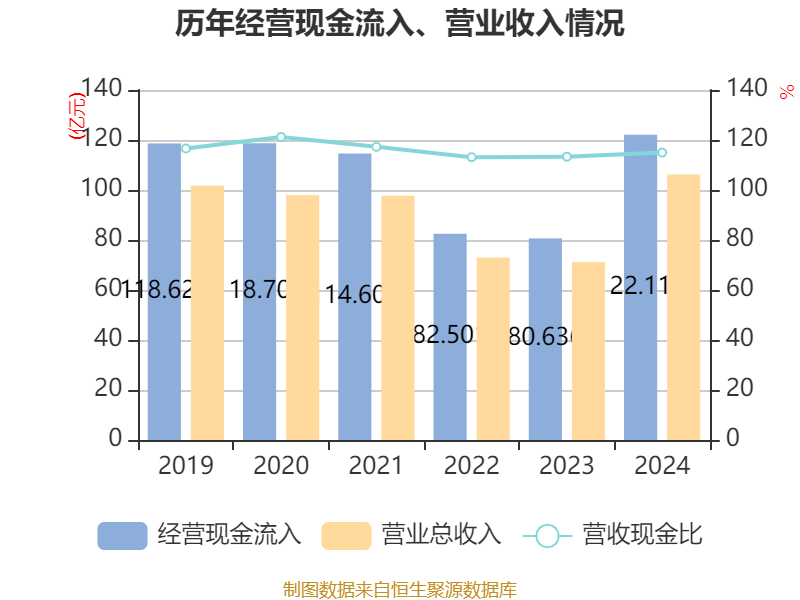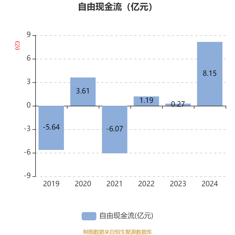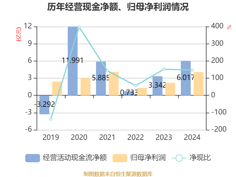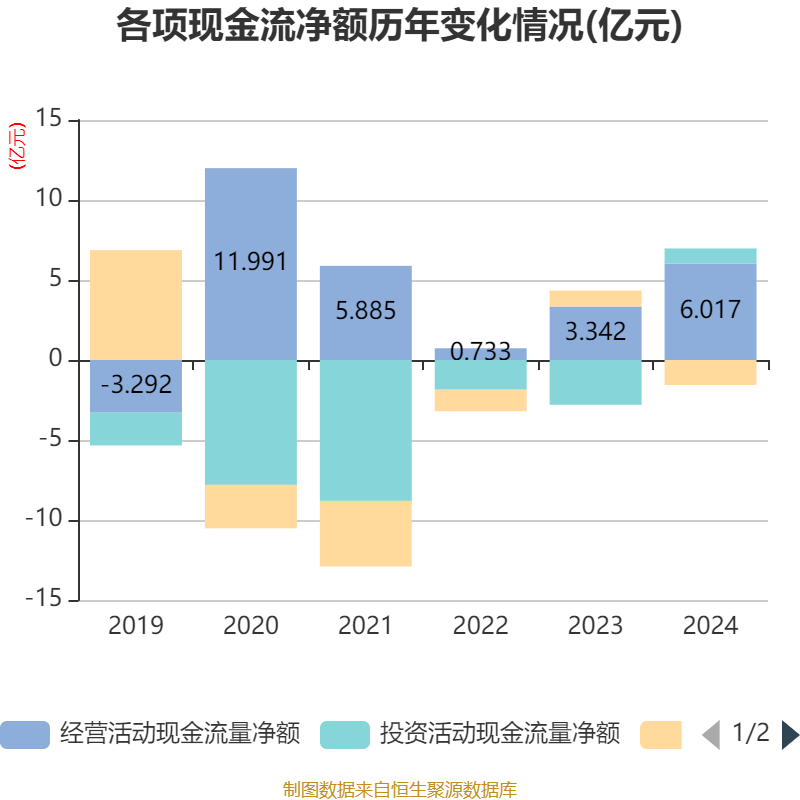 截至2024年,公司经营活动现金流净额为6.02亿元,同比增长80.08%;筹资活动现金流净额-1.56亿元,同比减少2.56亿元;投资活动现金流净额9546.04万元,上年同期为-2.8亿元。