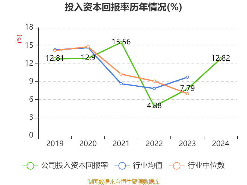 数据显示,2024年公司加权平均净资产收益率为15.18%,较上年同期上升6.06个百分点。公司2024年投入资本回报率为12.82%,较上年同期上升5.03个百分点。