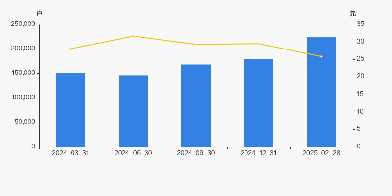 自2024年6月30日以来,公司股东户数连续3期上涨,截至目前增幅为53.78%。2024年6月30日至2025年2月28日区间股价下降18.33%。